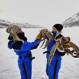 The Arctic King Crab is a sought after delicacy and you will learn how to catch, prepare and eat them. Your guide takes you out and you can lend a hand in sawing through the ice before your guide attempts to land you a few of these massive crustaceans. Enjoy the day's catch for lunch seated by a cosy fire in a small local farmhouse by the lake. You will travel to the lake by snowmobile sleigh.