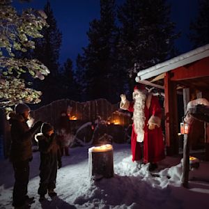 After breakfast, you will head out on a 2-hour Husky Safari. You will be taught how to handle the sled before heading out on the husky safari, where the huskies will pull your sled through the beautiful winter scenery. This afternoon it's time for the exciting Santa Meeting at Santa's Cabin. You will be seated in a snowmobile towed sleigh with fur covers for a short ride through the forest to a cabin in a secret location. You are dropped off by the door of Santa's cabin where you will have a visit and receive a small gift.
