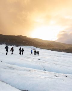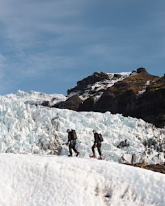 On this fun, safe, and easy to moderate glacier walk, you will see how the primal elements shape and affect the glacier, creating mesmerizing labyrinths of ice ridges and deep V-shaped crevasses that crisscross and scar the surface of the ice. Not to mention the big sinkholes, called “moulins”, that sometimes have drilled their way through the glacier, draining the meltwater of the ice through little waterfalls and streams. At the glacier edge, we lace up our crampons, and following the guide, you will explore this otherworldly natural wonder; a rugged, raw, and ever-changing hub of ancient frozen water.