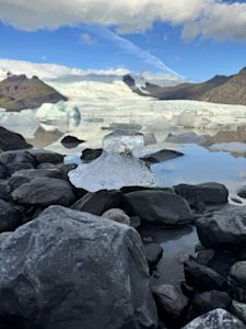 Today is dedicated to Iceland’s glacial wonders. Begin with a visit to Jökulsárlón Glacier Lagoon, where massive icebergs drift through crystal-clear waters — a surreal and unforgettable sight. If conditions allow, you may spot seals swimming among the ice.