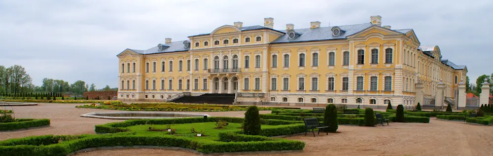 Rundale Palace ensemble – the most outstanding monument of Baroque and Rococo architecture and art in Latvia. The palace was built for the Duke of Courland, Ernst Johann Biron based on the project by architect F.B.Rastrelli during two time periods – from 1736 till 1749 and from 1764 till 1768. Most of the interior decorations were created by the sculptor J.M.Graff and artists F.Martini and C.Zucchi. Three staterooms are open to public in the eastern wing of the palace - the Gold Hall, White Hall and Grand Gallery. The central building is occupied by the Duke’s former living quarters – parade salons and private apartments and the fully restored Duchess' apartments and rooms are situated in the western wing of the palace.