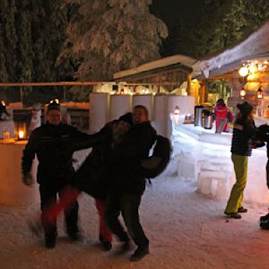 After breakfast, familiarize yourself with snowmobiling, a favourite hobby of the locals. This tour gives you good basic skills for snowmobiling and the guide will give you a full safety briefing and instructions on driving. The safari goes through the stunning snow-covered forests and two persons share a snowmobile where there is an opportunity to switch places halfway through the tour. Children ride in a sledge pulled by the guide's snowmobile.