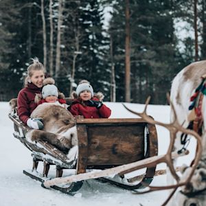 After the reindeer have been fed, it is time for a sleigh-ride in the gorgeous winter wonderland of the reindeer farm. The 1,5km long