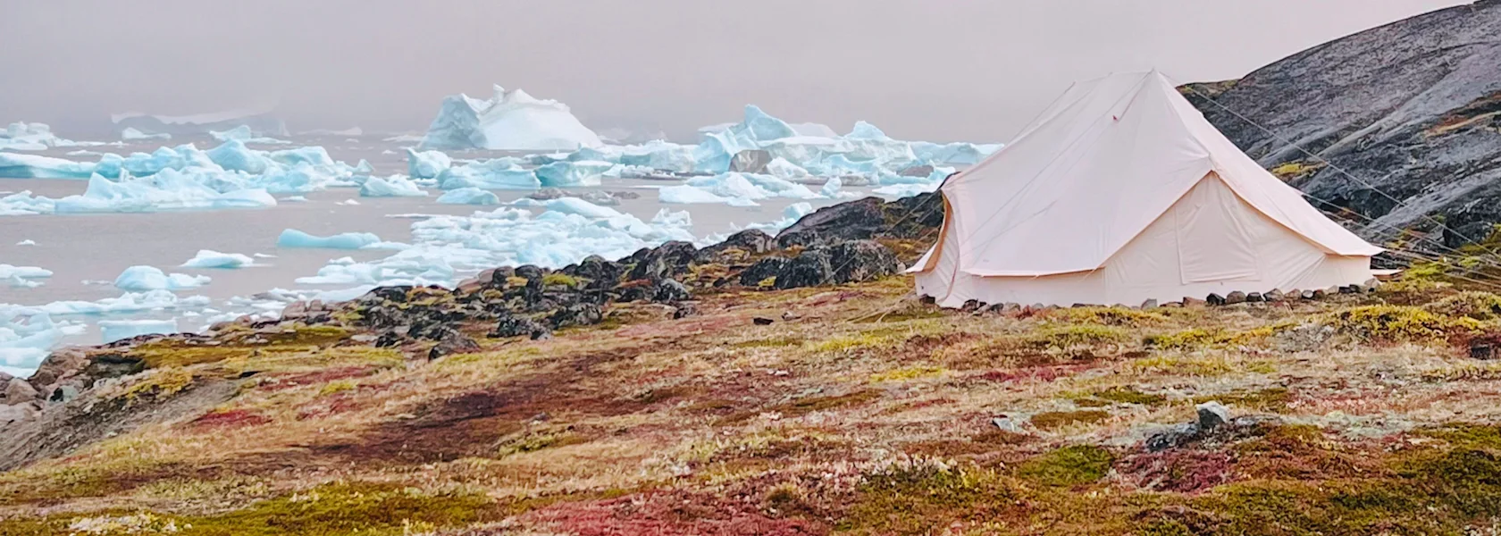We invite you to really experience Greenland! Stay in a remote luxury camp, situated a 100km boat ride away from Ilulissat, positioned beside the one of the biggest and oldest fjords in the world. Boat is the only way to get to this secluded spot. The heart of your journey unfolds over three nights at the exclusive Saqqaq Camp, a sanctuary cradled in the arms of pristine wilderness. Here, the legacy of Inuit ancestors is etched into the land, offering a bridge to ancient wisdom and enduring traditions.