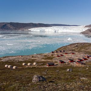 Around 2pm, we land at Port Victor, the harbour at Glacier Lodge Eqi. The camp guides will greet and show everybody their huts. Coffee and cake is served and practical information on the area is given. The rest of the day could be spent by joining the excursions that hike to the lagoon, the moraine and the glacier or enjoying the view from the huts.