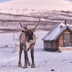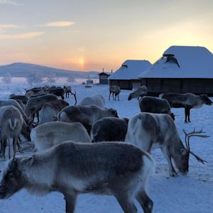 You will be provided warm snowmobiling gear and blankets for your journey out to the tundra. The route is not predefined and Nils-Matti will contact your driver-guide to provide instructions where to find him - and the herd. Nils-Matti spends most of his time out in the wilds, tending to his reindeer herd, but it's the reindeer who determine the whereabouts, and reindeer are led by the wind.