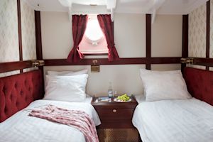 The cabins are small and charming. With the exception of a few cabins, they are fitted with bunk beds and are about the size of a sleeping compartment on a train. For reasons of space, we recommend that you only bring a medium-sized bag to push under the berth. Large suitcases can be stored in a luggage room on board. As the berths vary in length, please tell us ahead of time if you are above average height (approx. 175 cm).