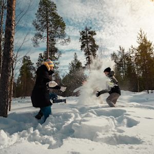As well as snowmobiling, reindeer sledding and husky safaris, activities like the free use of cross-country skis, ice-skates, toboggans, snowshoes and campfires keep the days full. In the evening, sit back with other guests in the cozy Kota restaurant and share the day's tales.