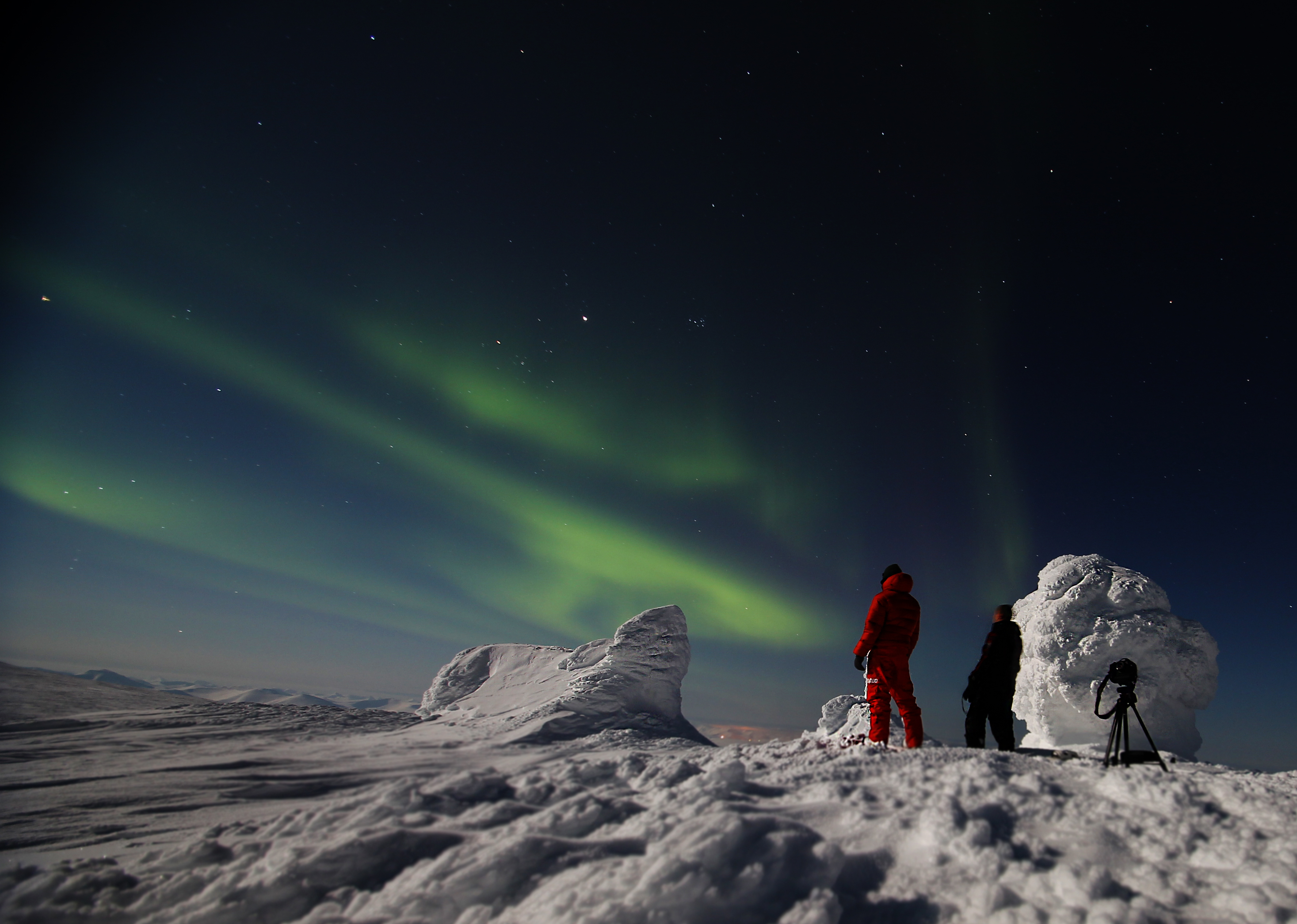 By the end of October the last rays of the sun disappear below the horizon, and Svalbard heads towards a period of darkness. For more than two months, between mid-November and the end of January, darkness prevails around the clock. During the darkest times there is no telling if it is noon or midnight. When the sky is clear, stars light up the sky. The Northern Lights and a full moon bounce their light from the snow-covered mountains, and suddenly the darkness doesn’t seem so overwhelming. By February, the light returns slowly. Light blue, pink, and purple colours light up the scenery. Finally, the sun hits the first mountain peaks.