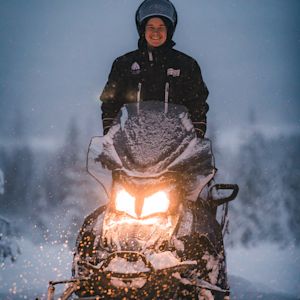 The Safari guide will teach you how to handle snowmobiles and about security matters and the rules of the safari. When two people are sharing a snowmobile, they can take turns in driving. You will get full safari equipment for the duration of the program: thermal outfit, socks and boots, gloves, balaclava and helmet.