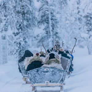 This morning, see how Laplanders used to move around before snowmobiles arrived in the northern wilderness. Riding in a reindeer sleigh through the wintry forest is an experience that seldom comes around in one’s life! The reindeer rides start from and end in the reindeer paddock in the Northern Lights Village.