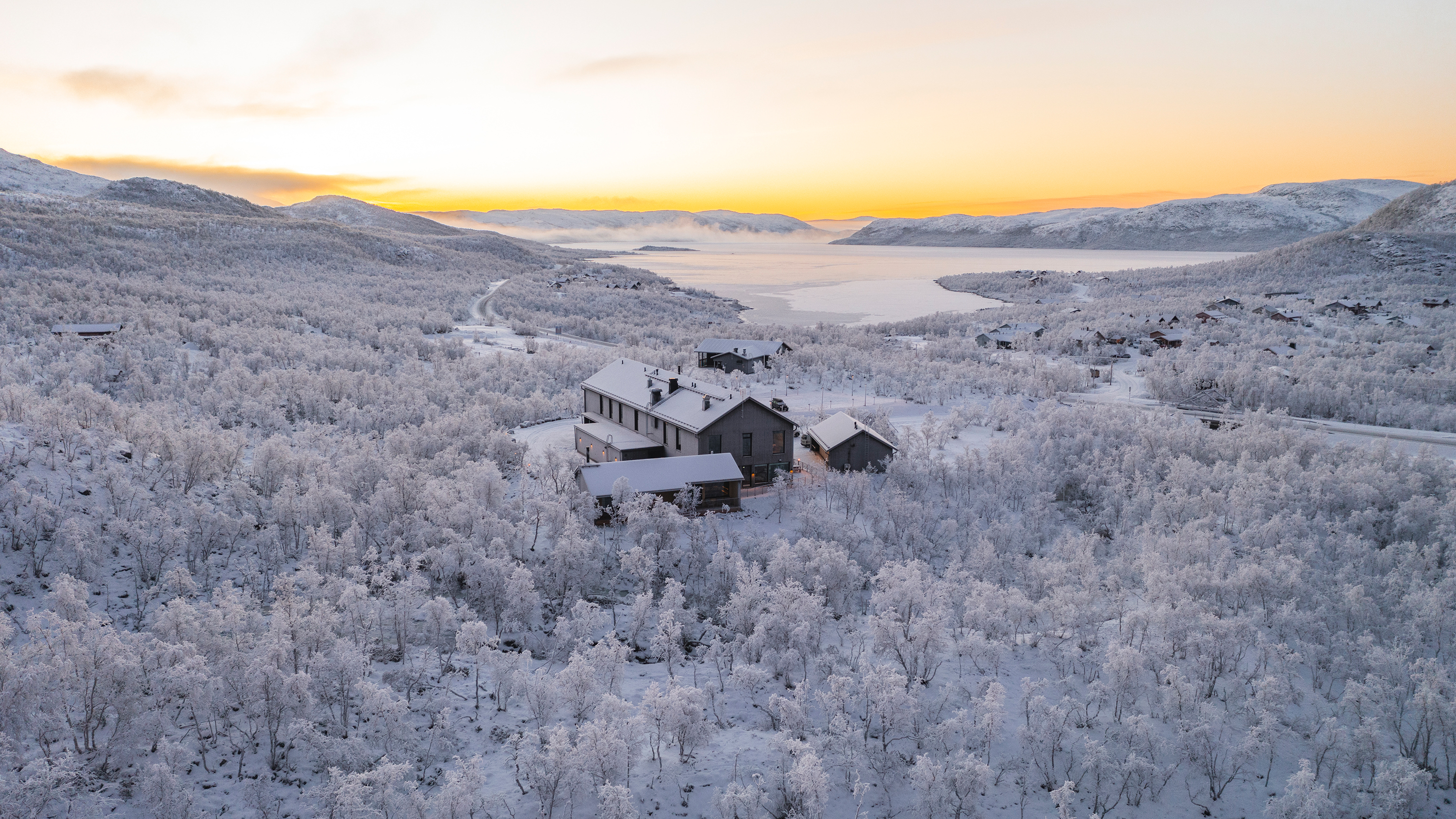 23 rooms. No televisions. Sauna included. Activities from the door. Aika Restaurant sources from the lake, the tundra and the local Sámi herder.