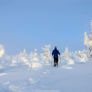 This evening, you will enjoy your final excursion, an exciting snowmobile safari under the Arctic sky as we search for the Northern Lights. Fell Särkitunturi is far away from artificial lights and an ideal spot for Northern Light hunting. This tour is not just about the Northern Lights – it's about experiencing the pure essence of nature in all its forms. On the way we pause for a break in a kota, a traditional Lappish tepee. Nestled amidst the snow-covered landscape the kota offers a cozy break to enjoy local treats.