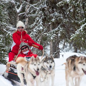 Note: Two people share a husky sled. One drives and one travels as a passenger. There is opportunity to switch places half way through the tour.