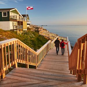 Arrive in Greenland’s vibrant capital, where Arctic nature meets modern city life. A shuttle transfer will take you to your centrally located hotel, giving you a first glimpse of Nuuk’s colourful buildings set against a dramatic mountain backdrop. Settle in and start soaking up the fresh Arctic air.