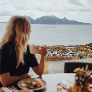 End your day with a delicious dinner and an overnight stay at Hamn i Senja, where you can relax and unwind in this charming coastal setting.